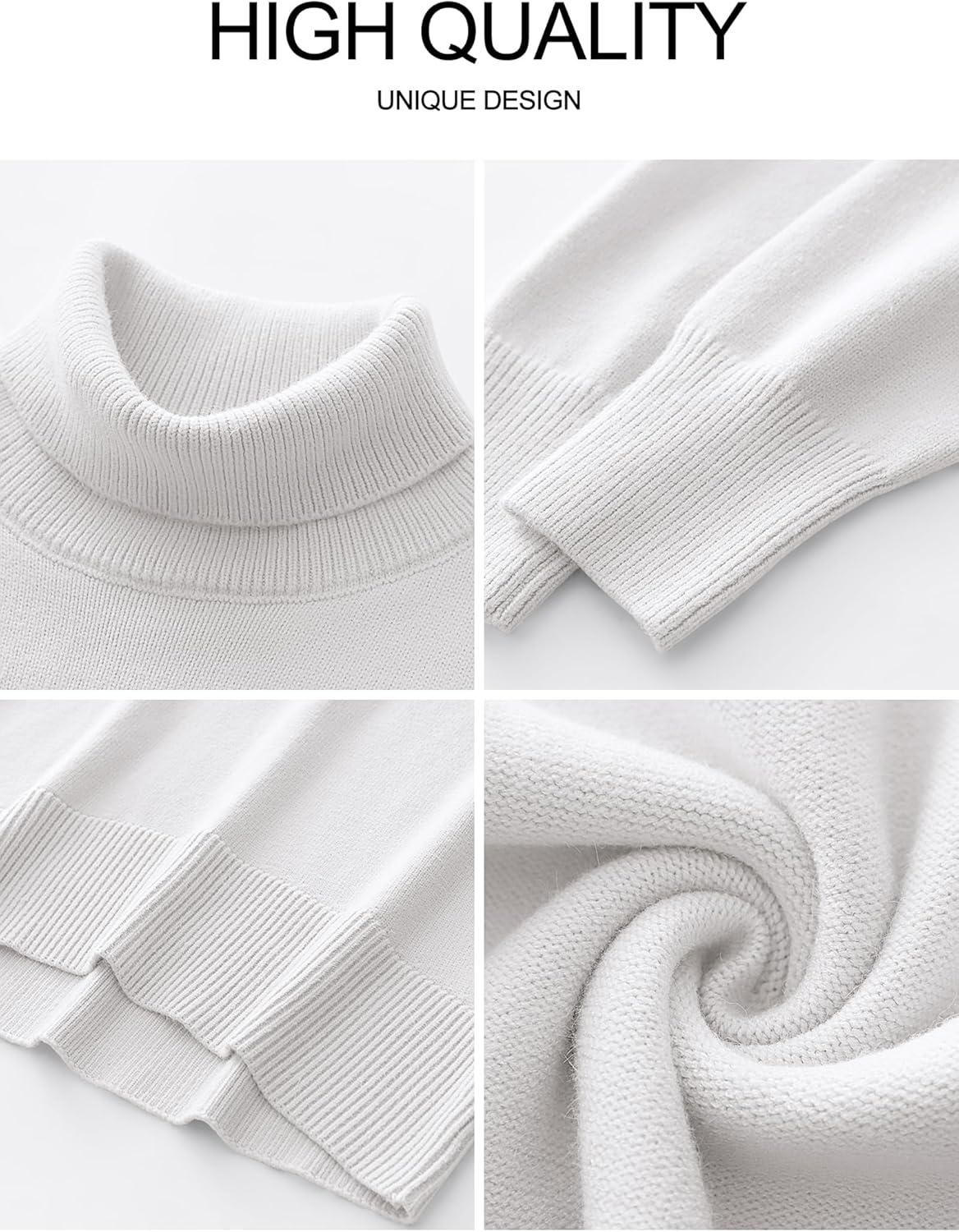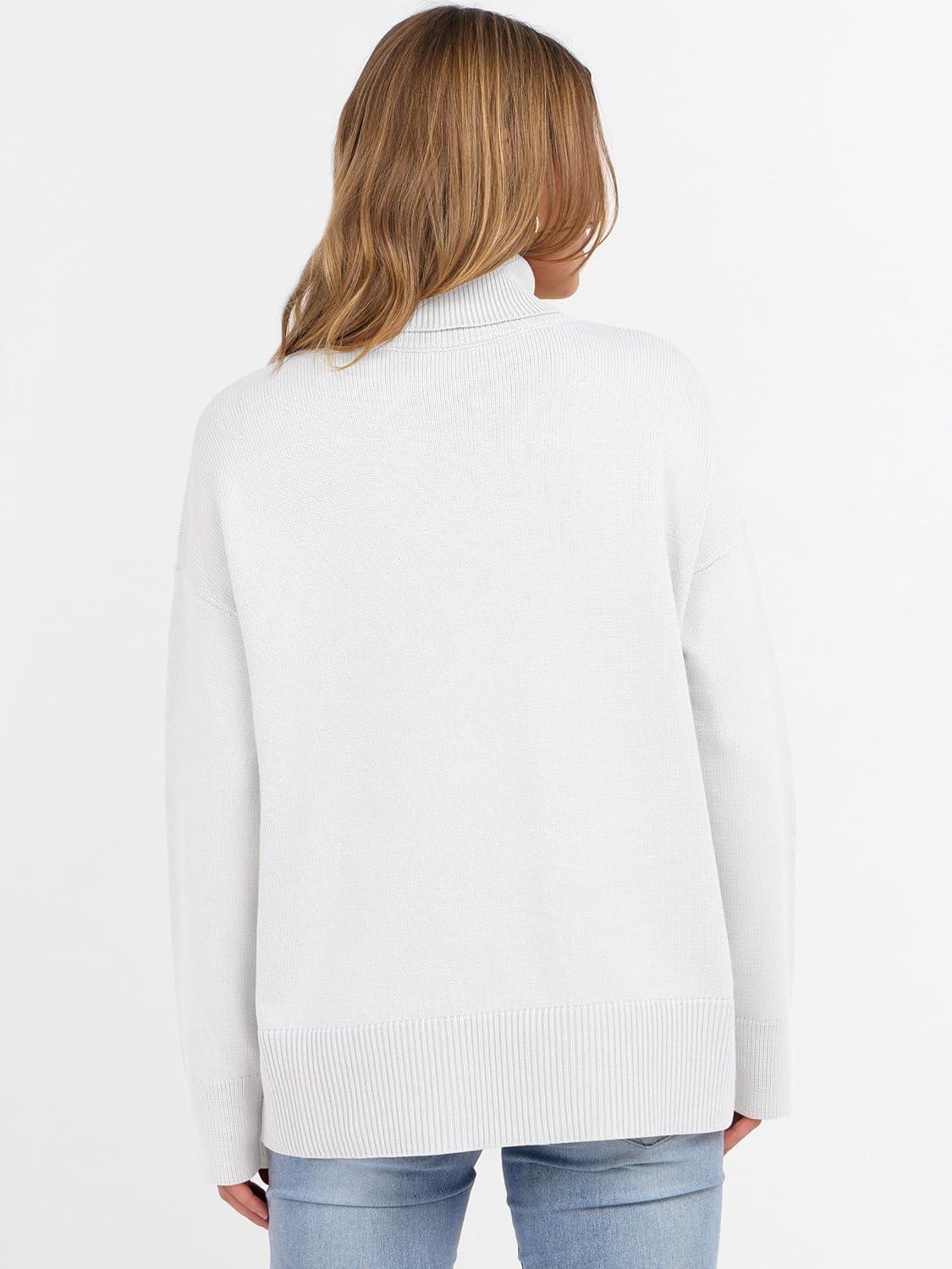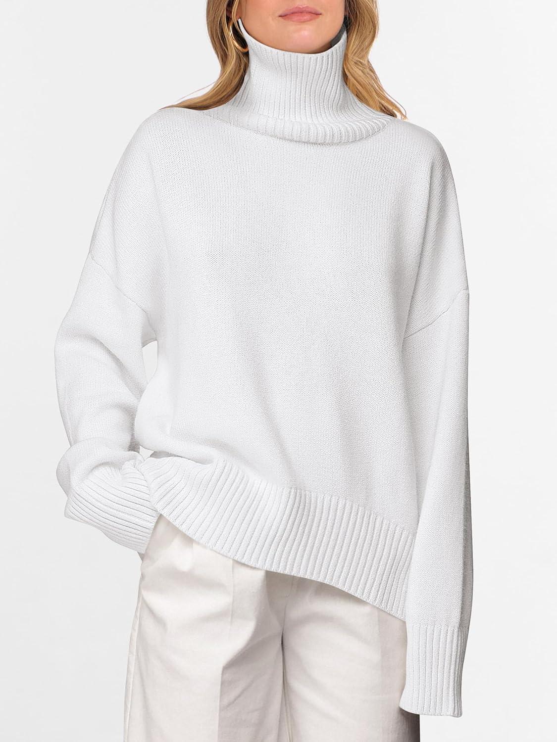 ANRABESS Womens Turtleneck Sweaters Oversized Chunky Long Sleeve Knit High Low Hem Pullover Top 2025 Fall Winter Fashion(White)