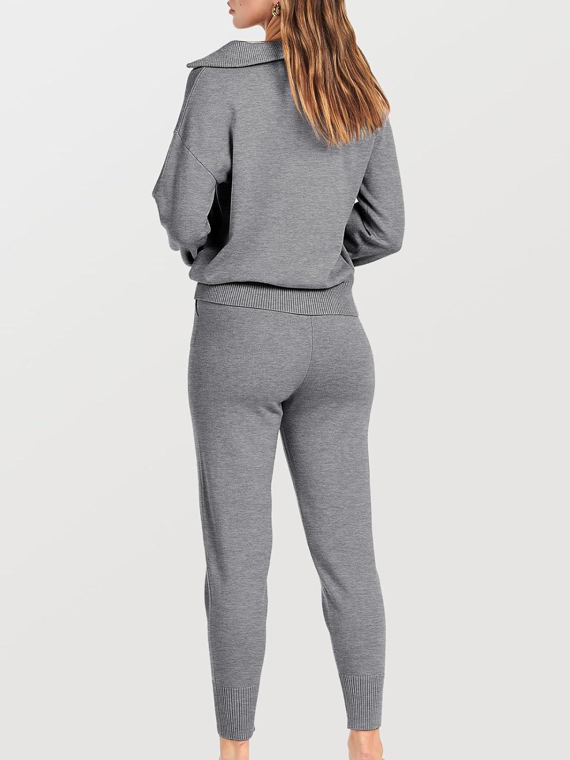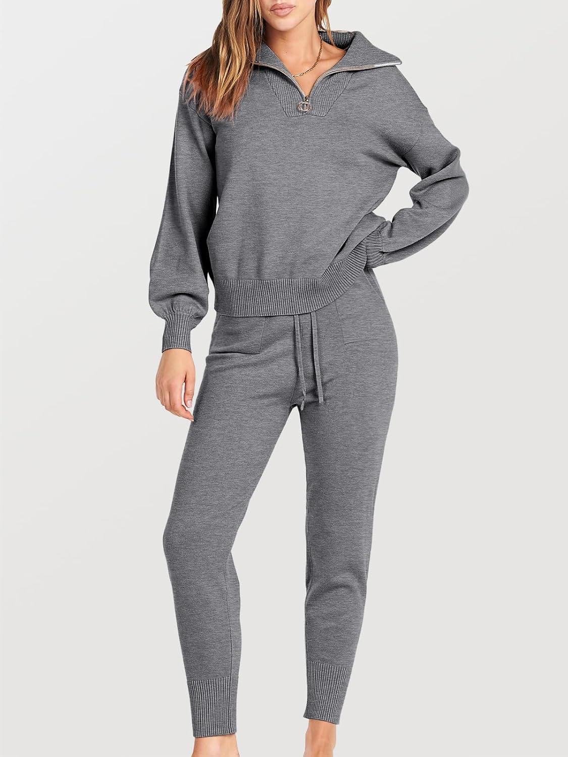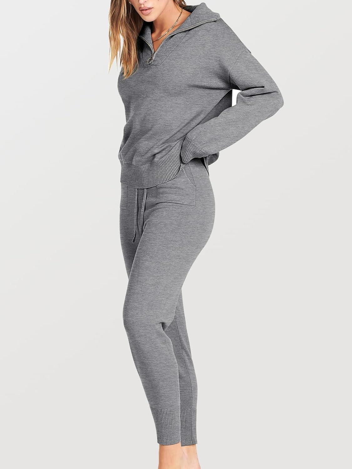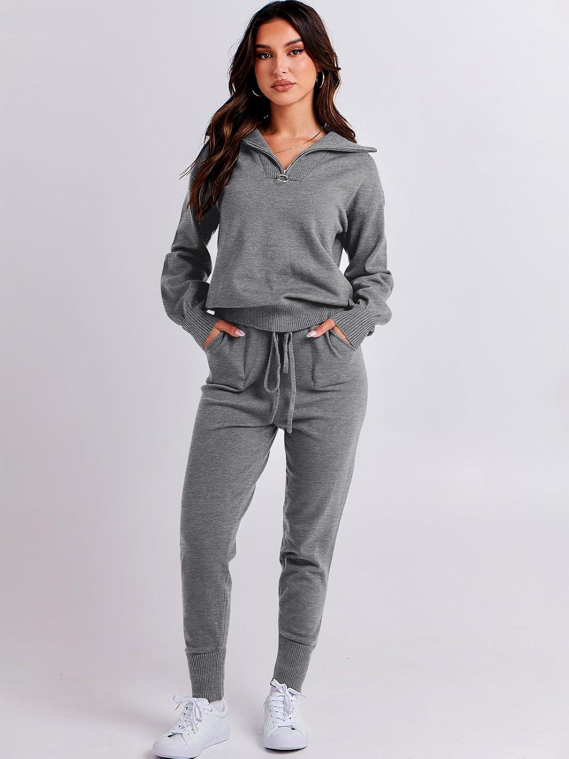 ANRABESS Women’s Two Piece Outfits Sweater Lounge Sets Long Sleeve Zip Up Knit Pullover Jogger Pants Tracksuit Travel Outfits(Grey)