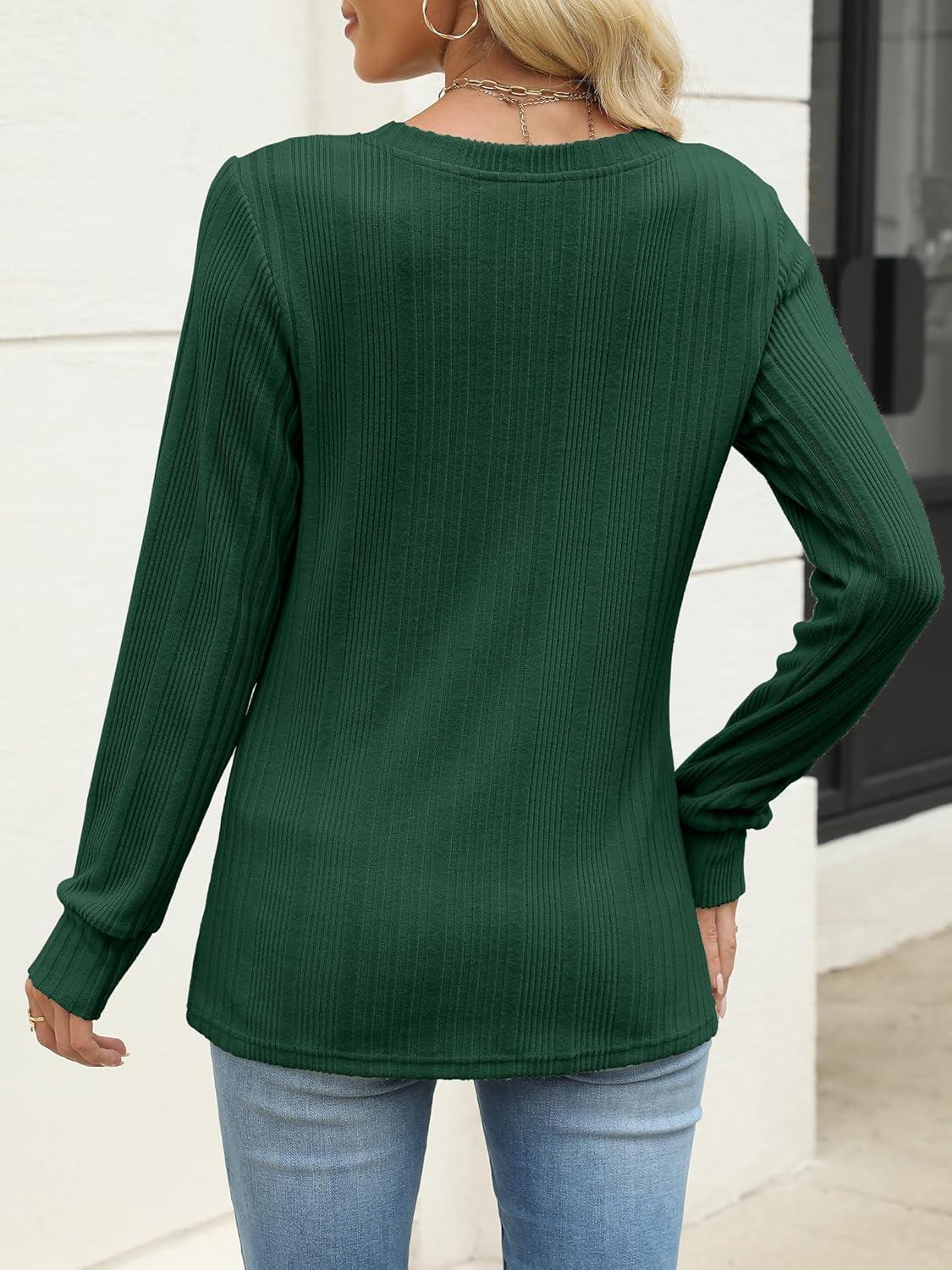 ANRABESS Womens V Neck Sweaters 2025 Fall Long Sleeve Shirts Lightweight Ribbed Knit Basic Casual Office Work Tunic Tops(Deep Green)