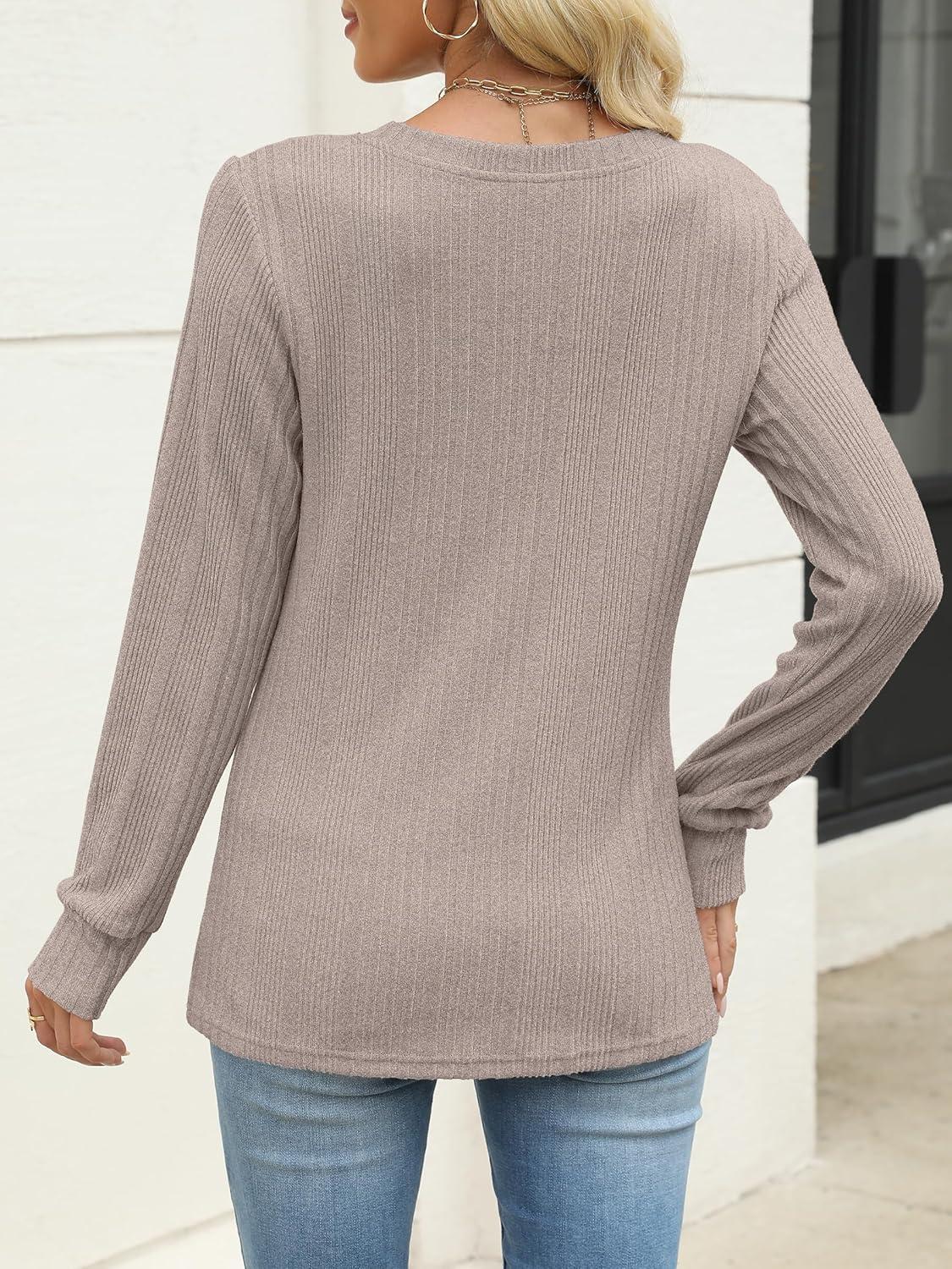 ANRABESS Womens V Neck Sweaters 2025 Fall Long Sleeve Shirts Lightweight Ribbed Knit Basic Casual Office Work Tunic Tops(Grey Khaki)