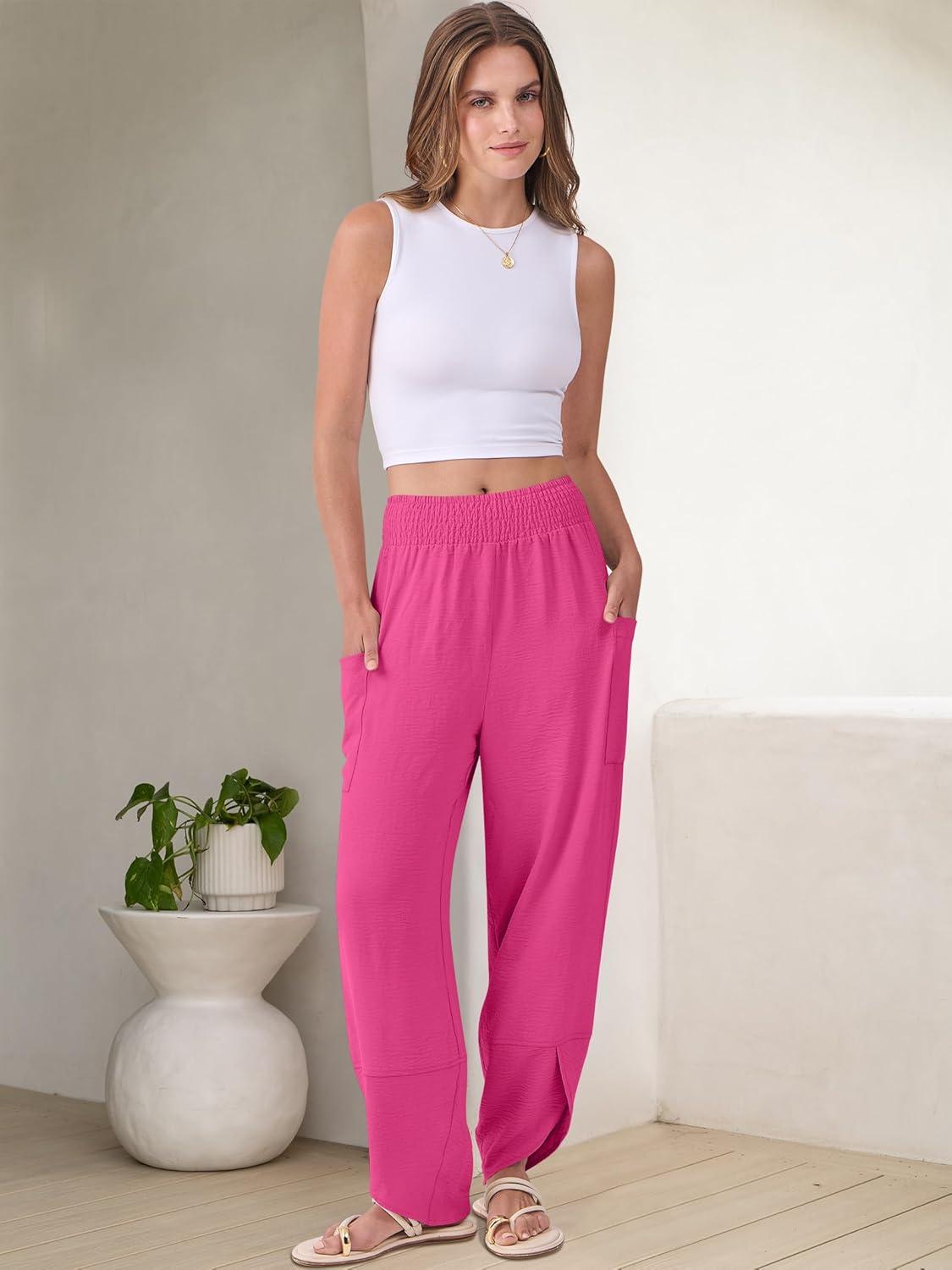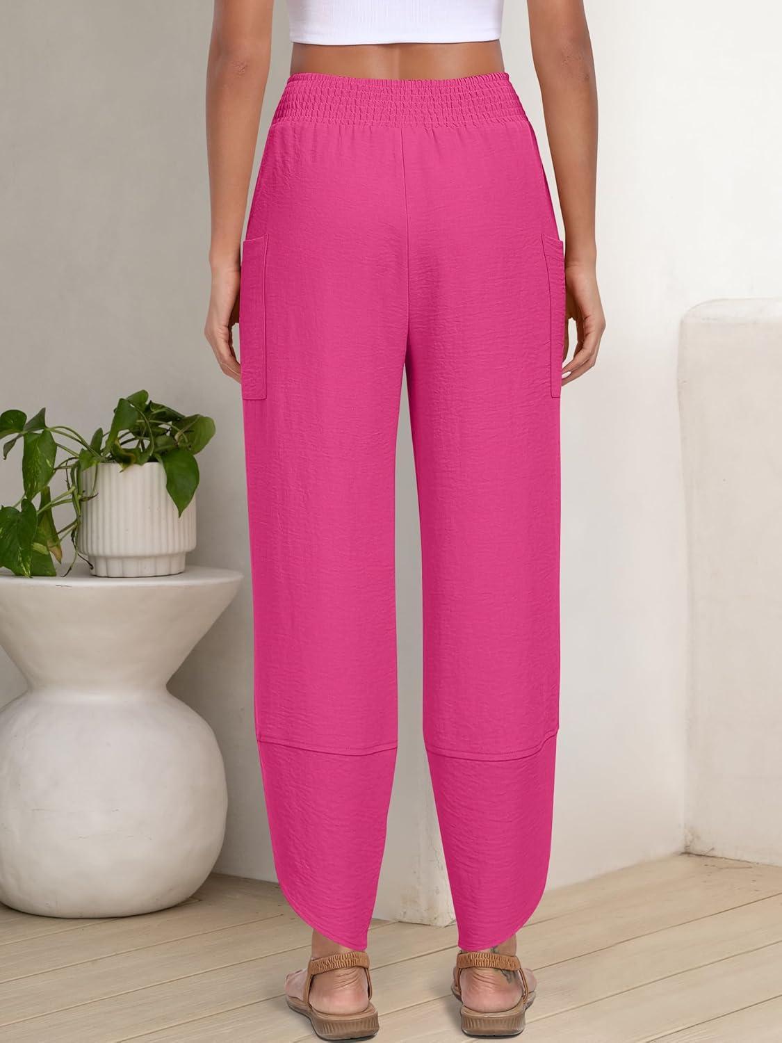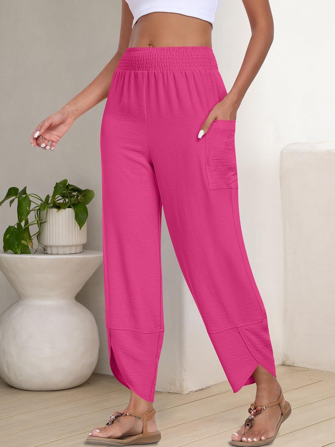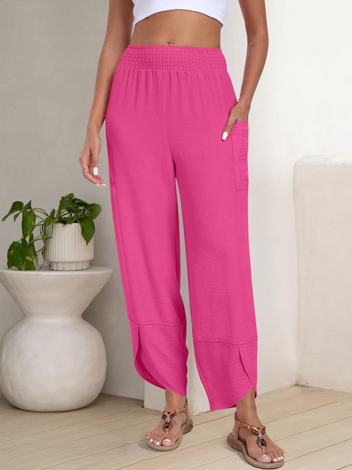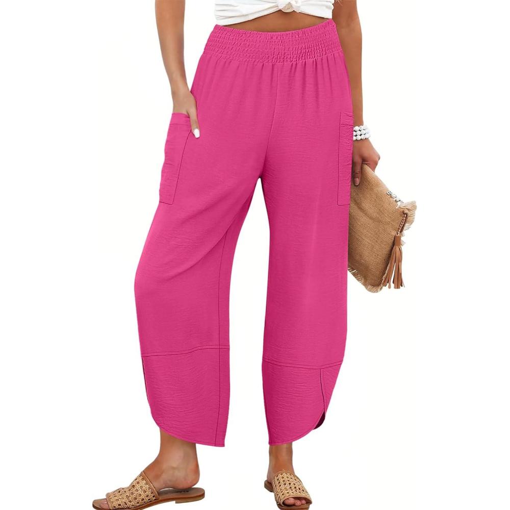 ANRABESS Womens Wide Leg Palazzo Capri Pants 2025 Summer Casual Loose High Waisted Lounge Flowy Cropped Beach Work Trousers(Hot Pink)