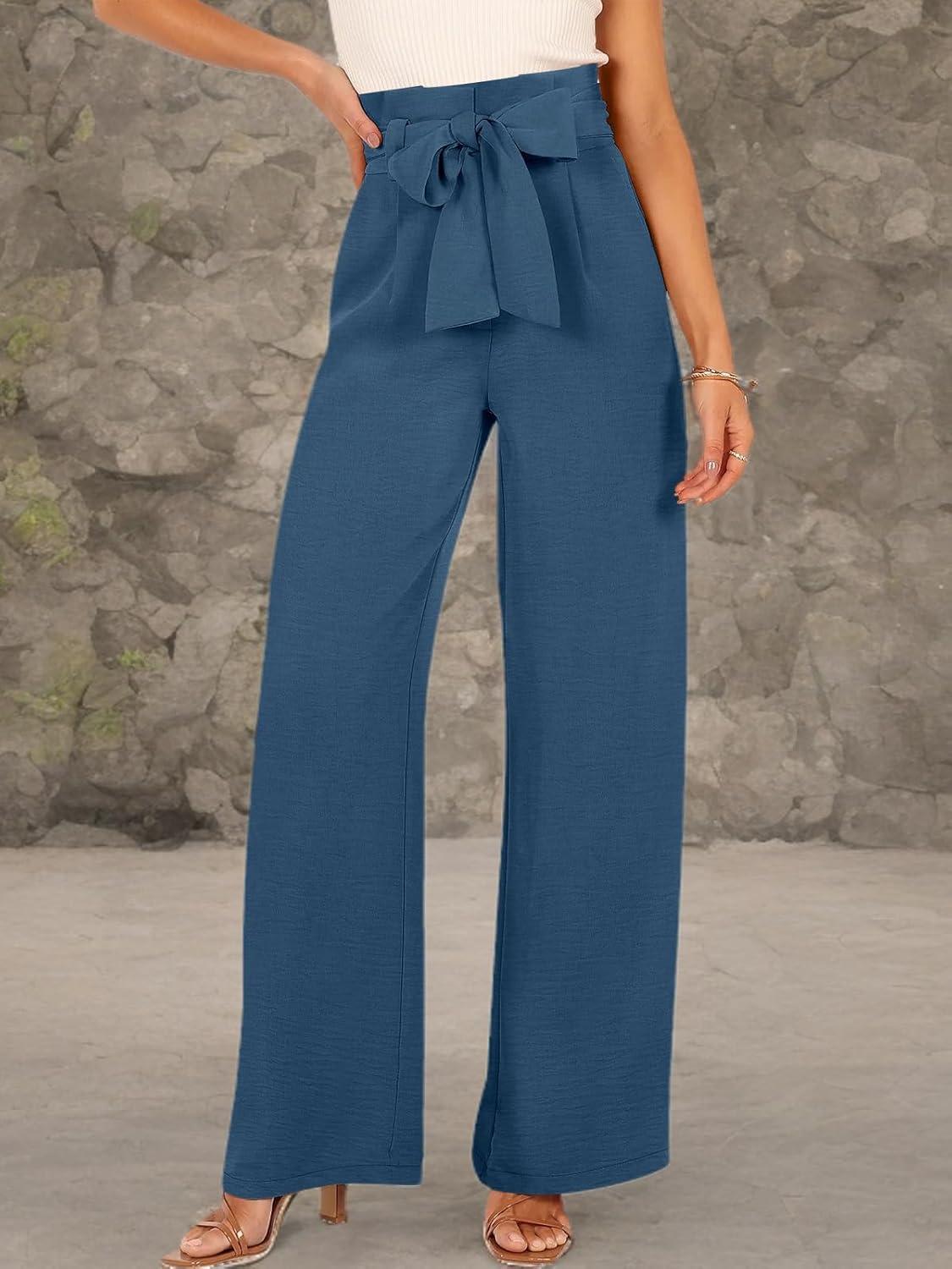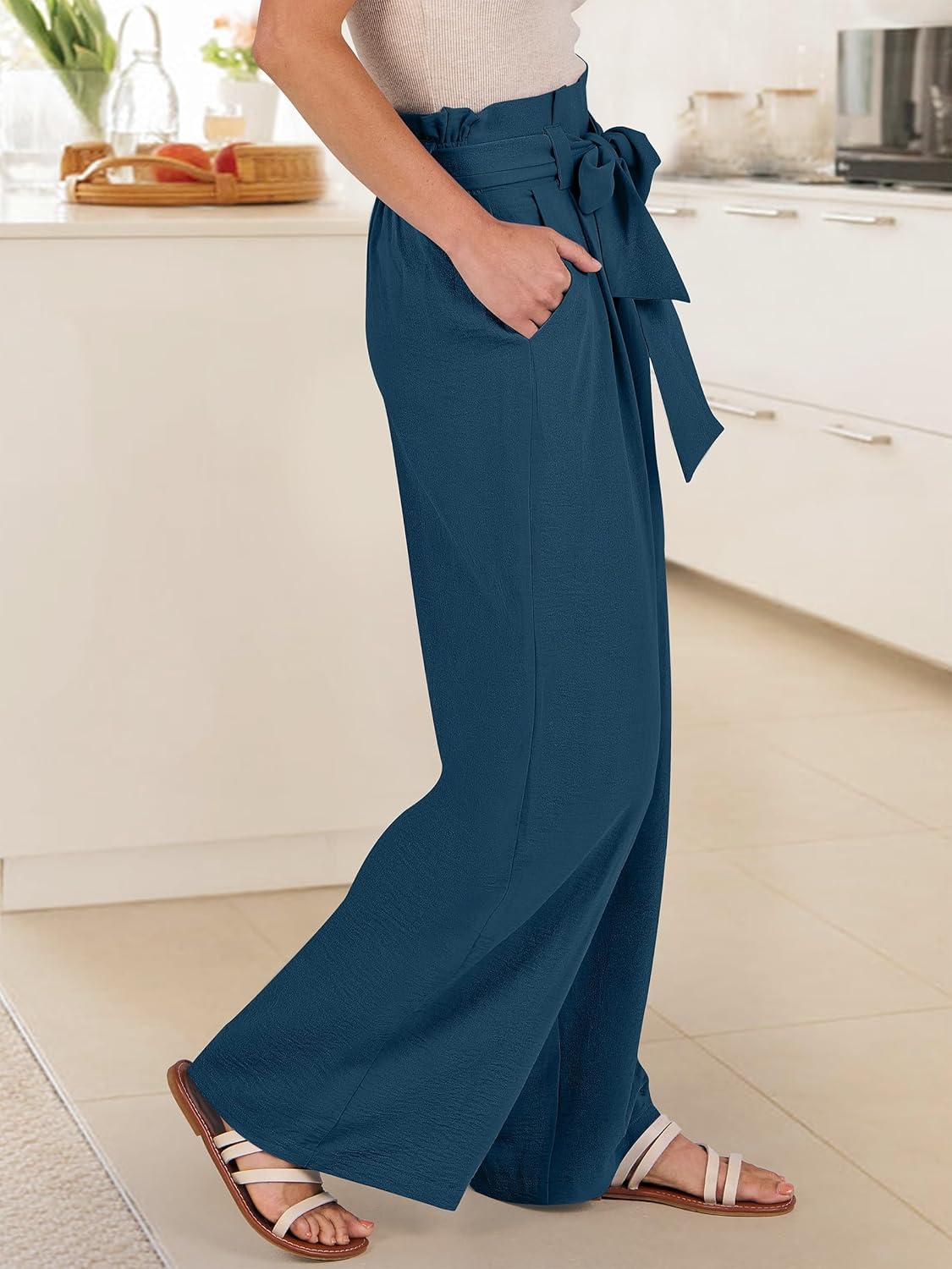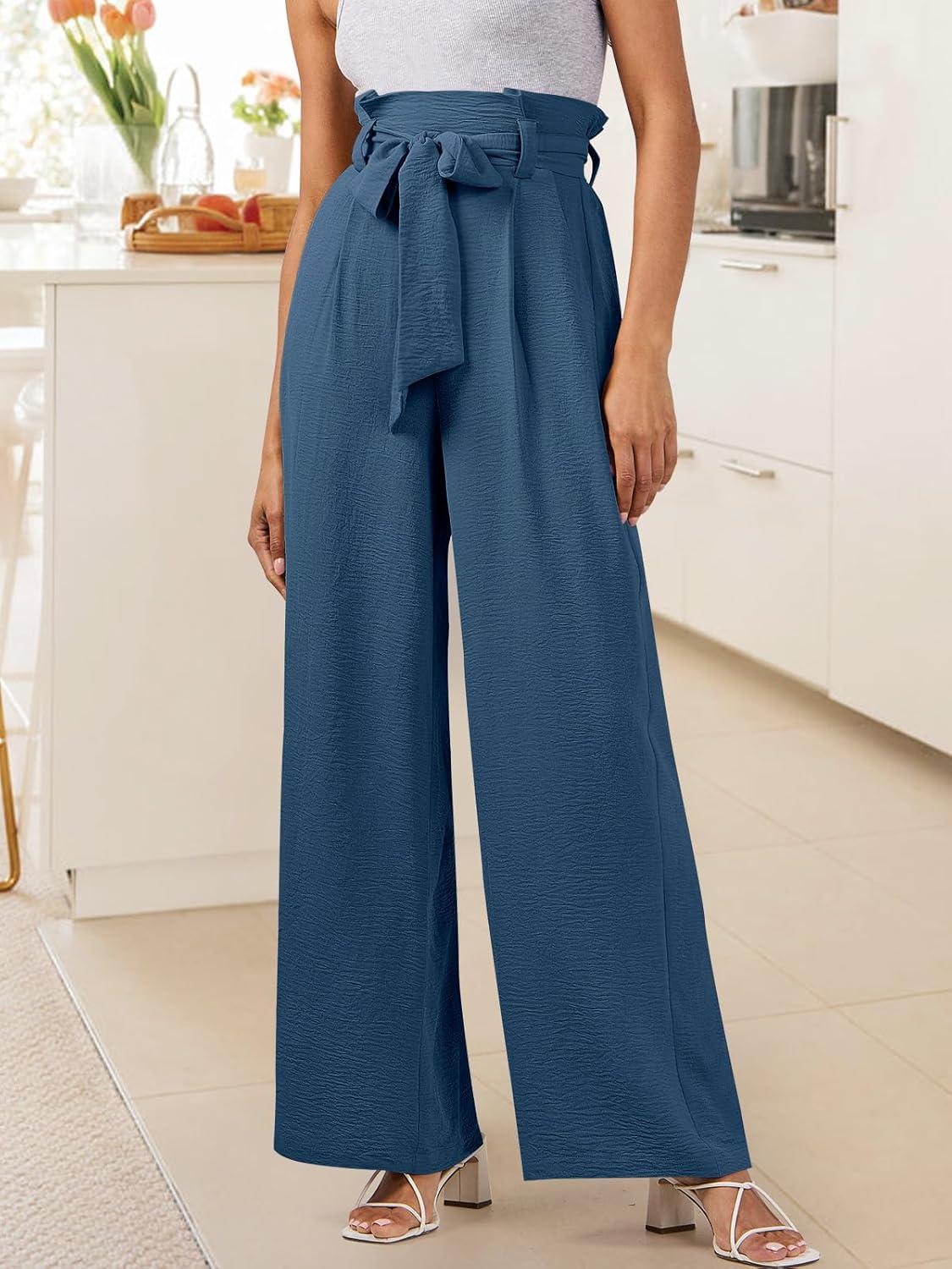 ANRABESS Womens Wide Leg Palazzo Pants Belted High Waisted Business Casual Flowy Long Trousers with Pockets(Deep Bule)