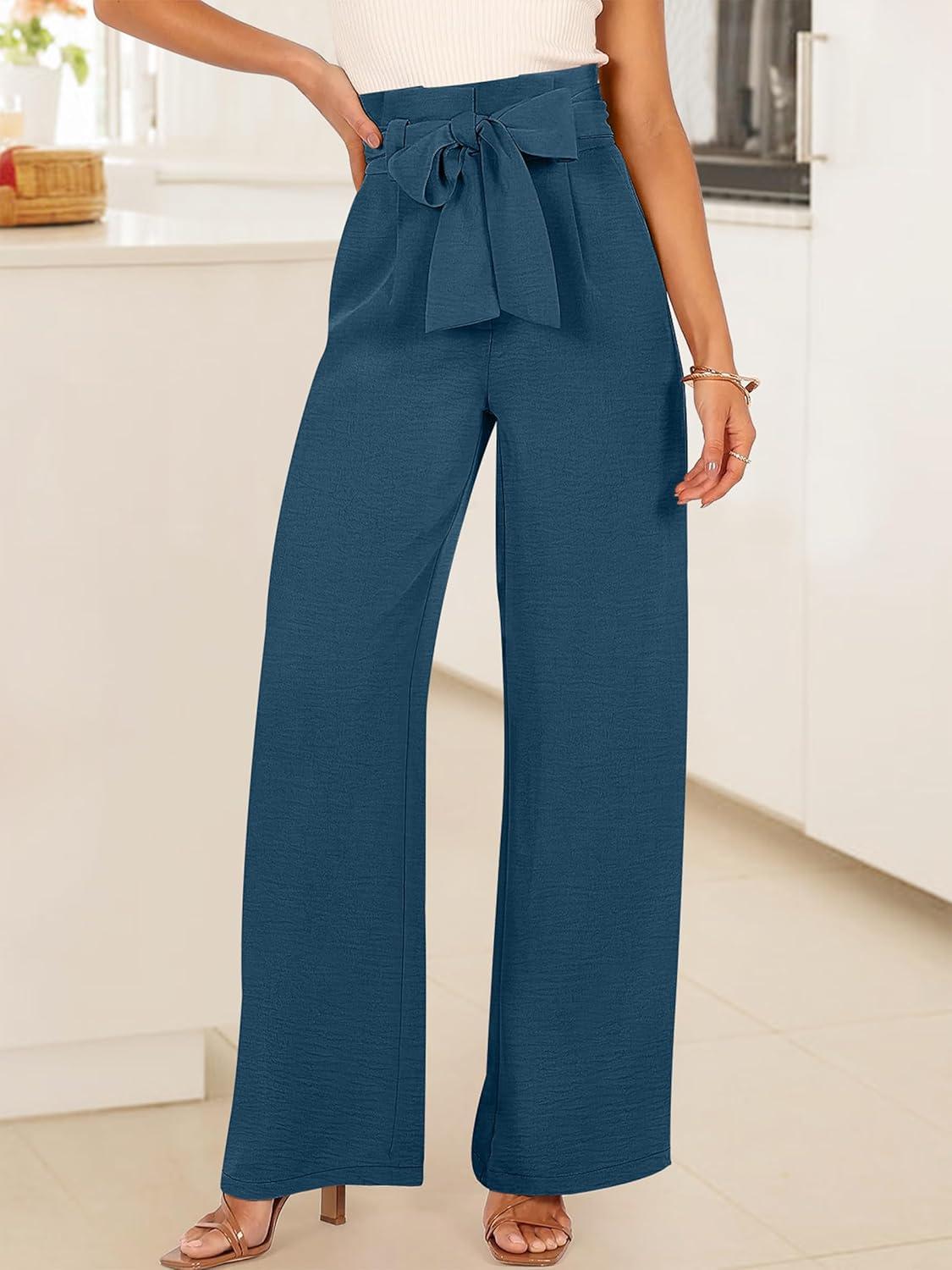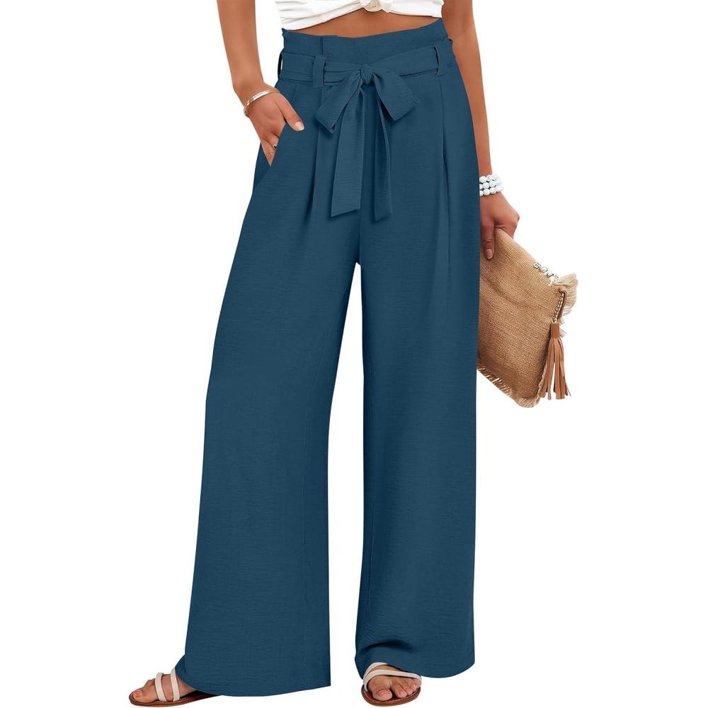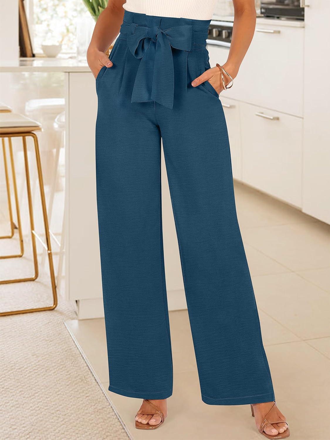ANRABESS Womens Wide Leg Palazzo Pants Belted High Waisted Business Casual Flowy Long Trousers with Pockets(Deep Bule)