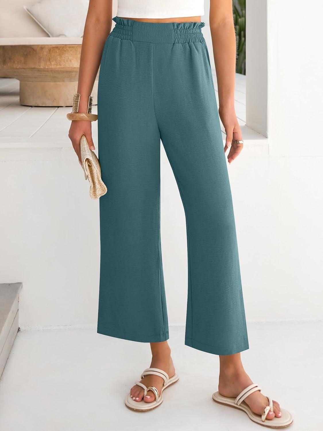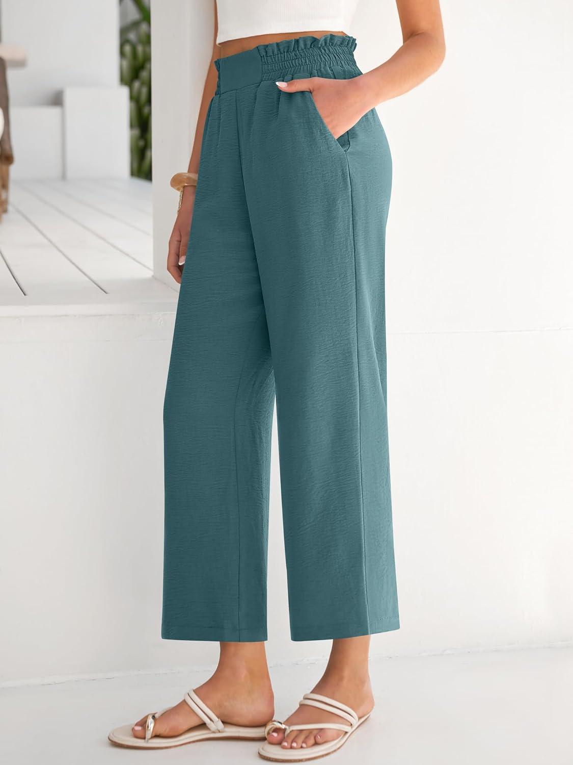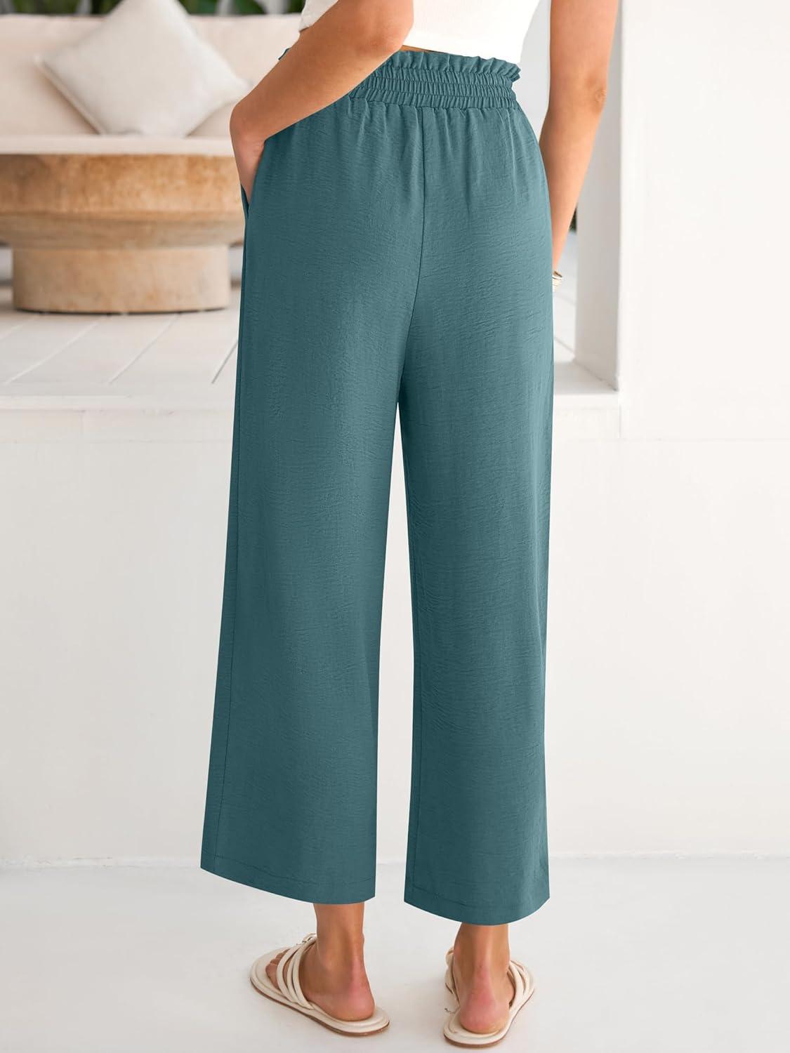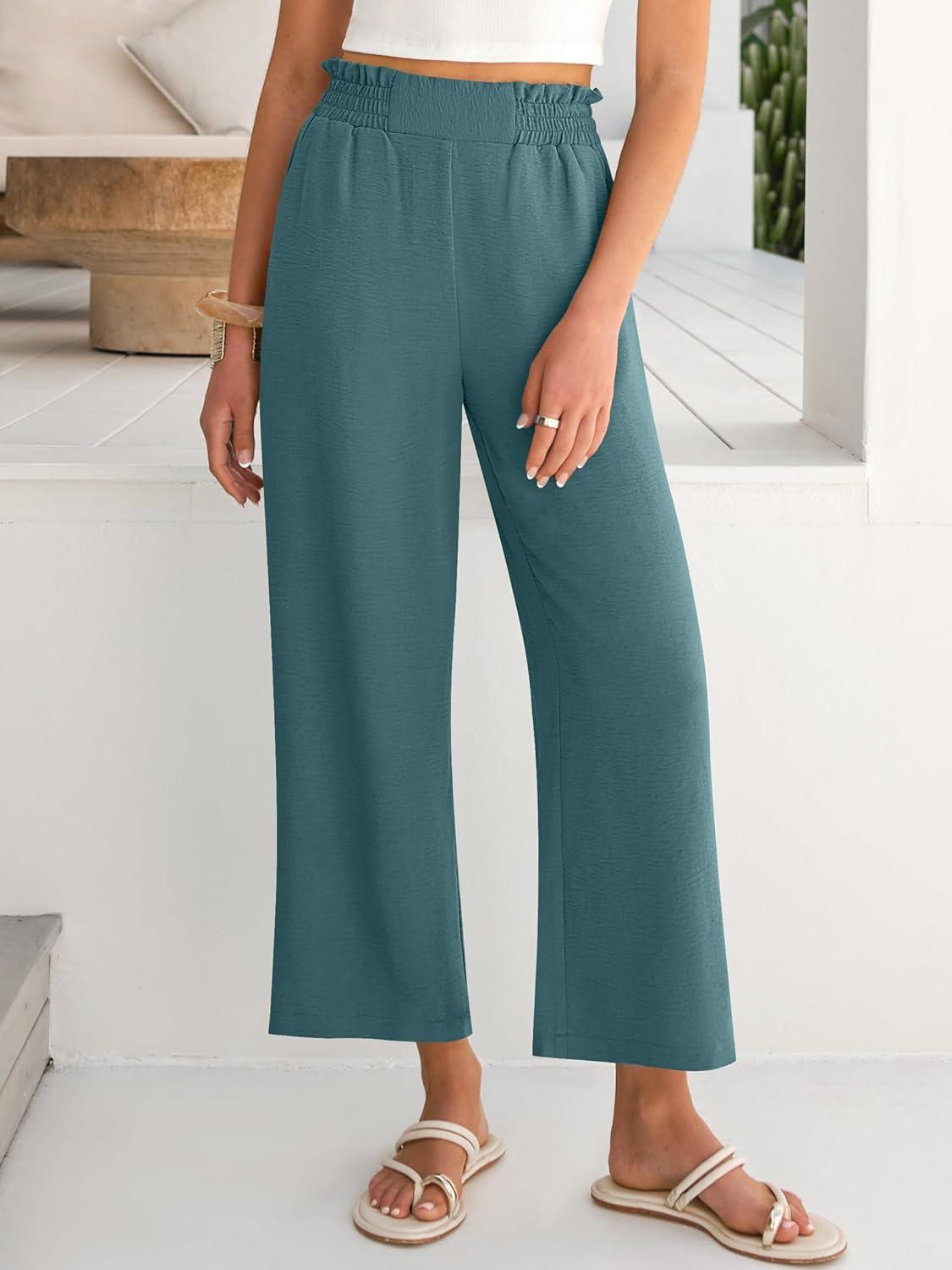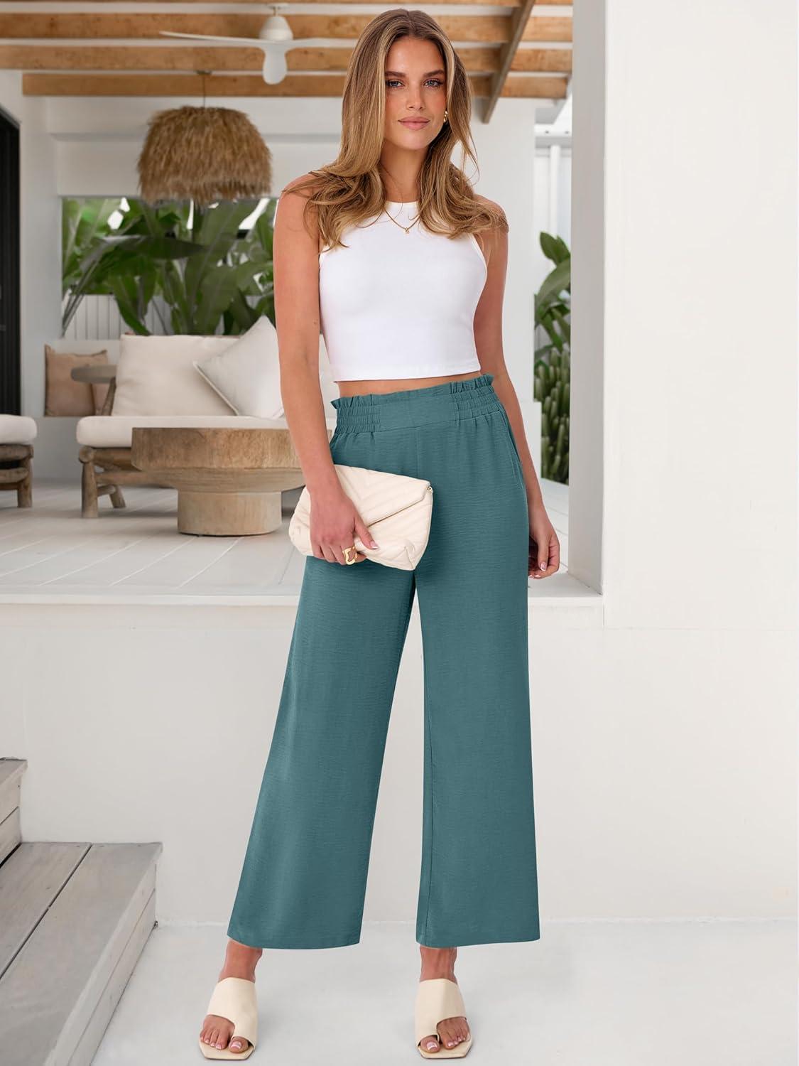 ANRABESS Womens Wide Leg Palazzo Pants Summer Beach High Waisted Cropped Flowy Pants 2026 Work Casual Trousers with Pockets(Lake)