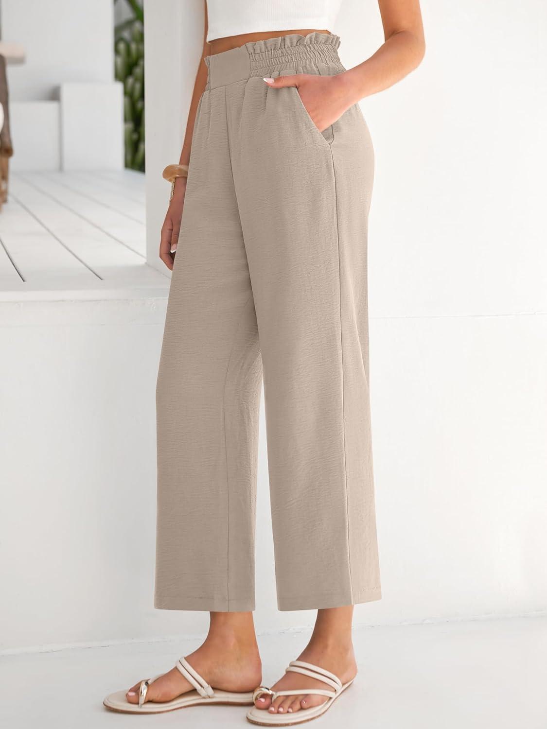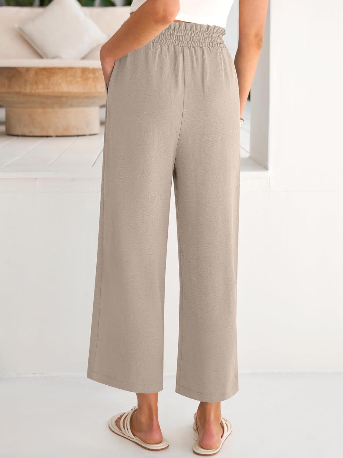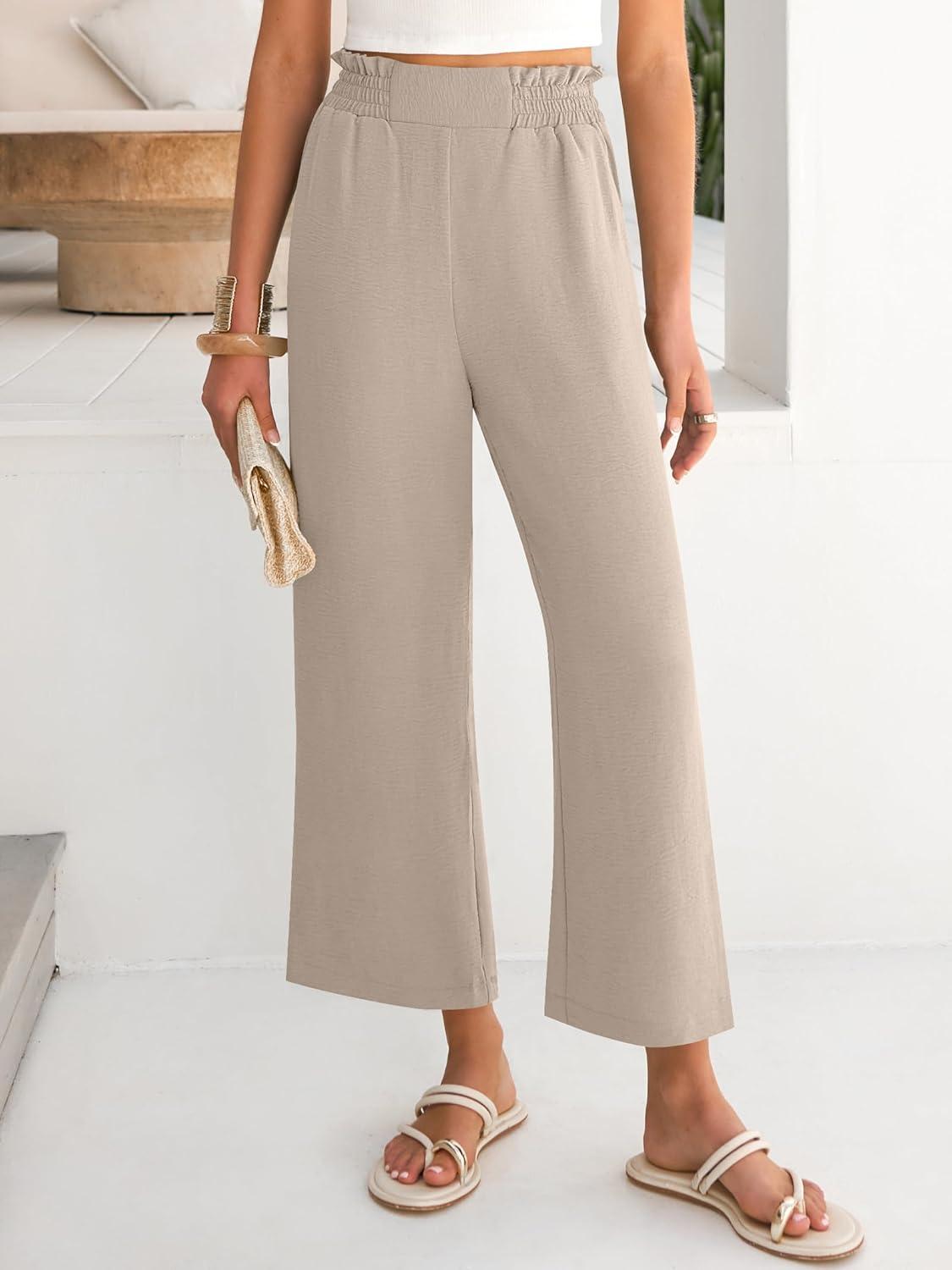 ANRABESS Womens Wide Leg Palazzo Pants Summer Beach High Waisted Cropped Flowy Pants 2026 Work Casual Trousers with Pockets(Parchment)