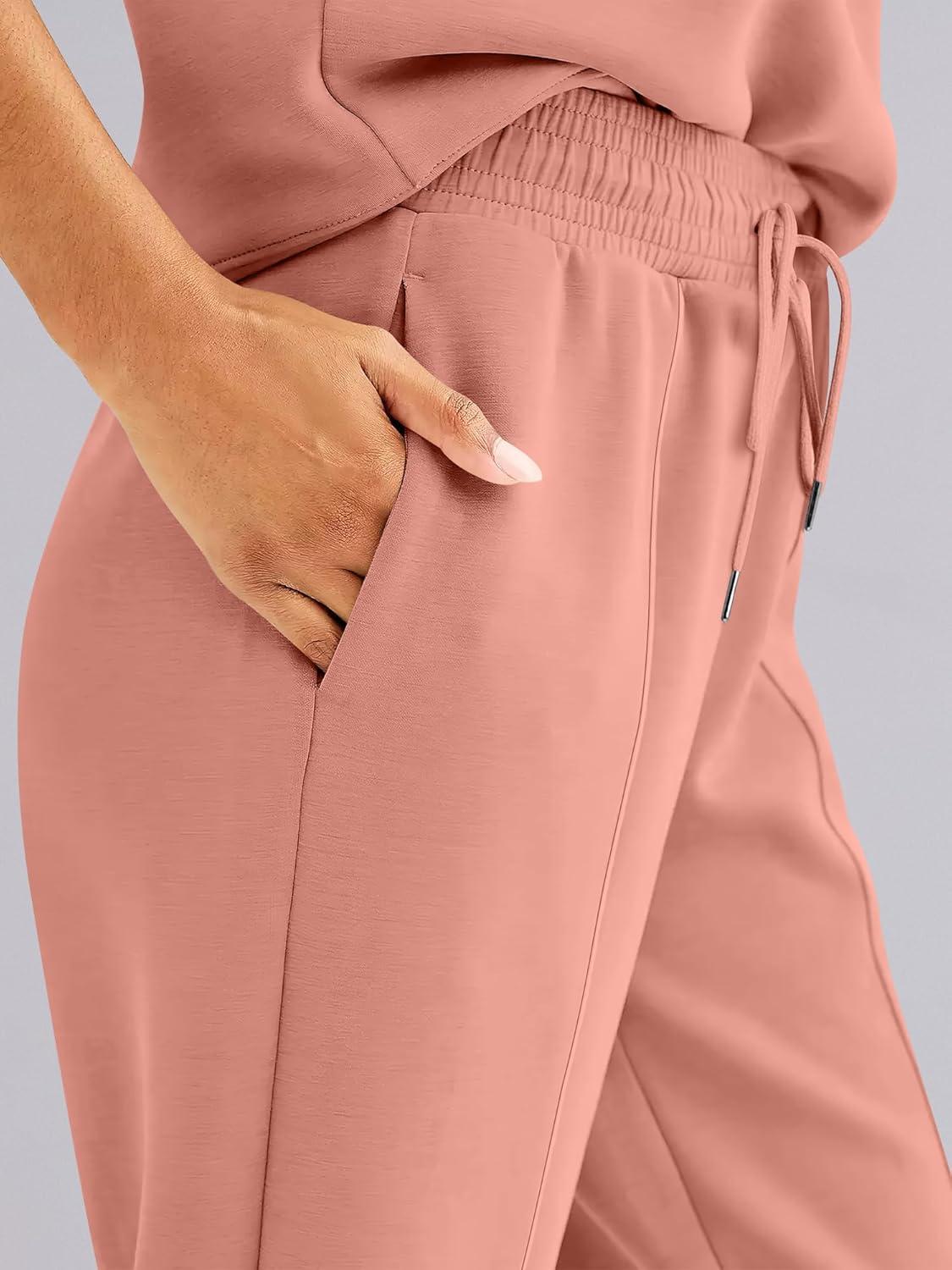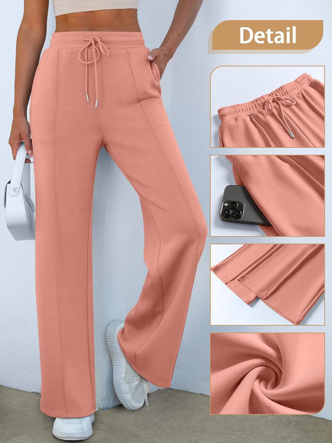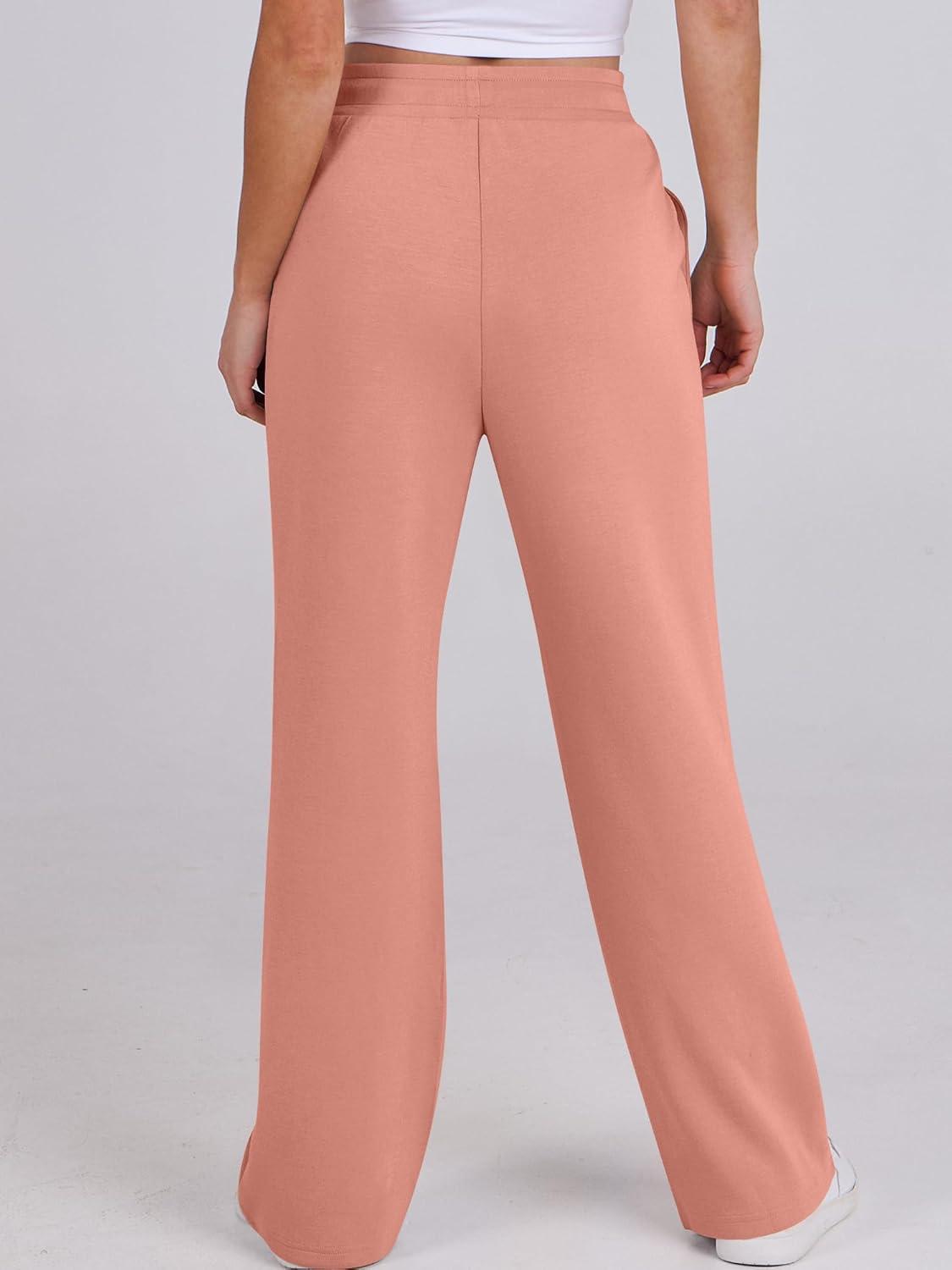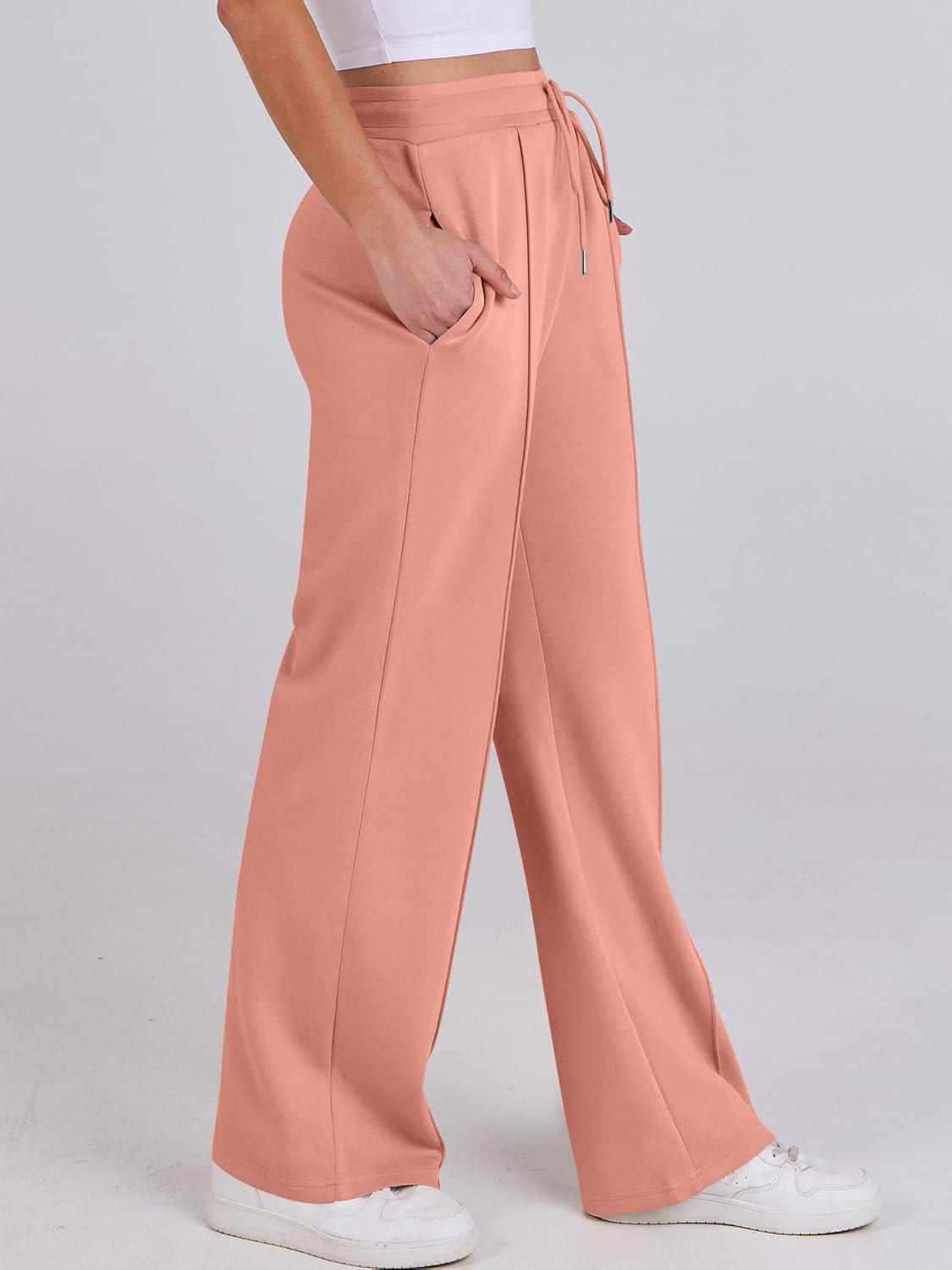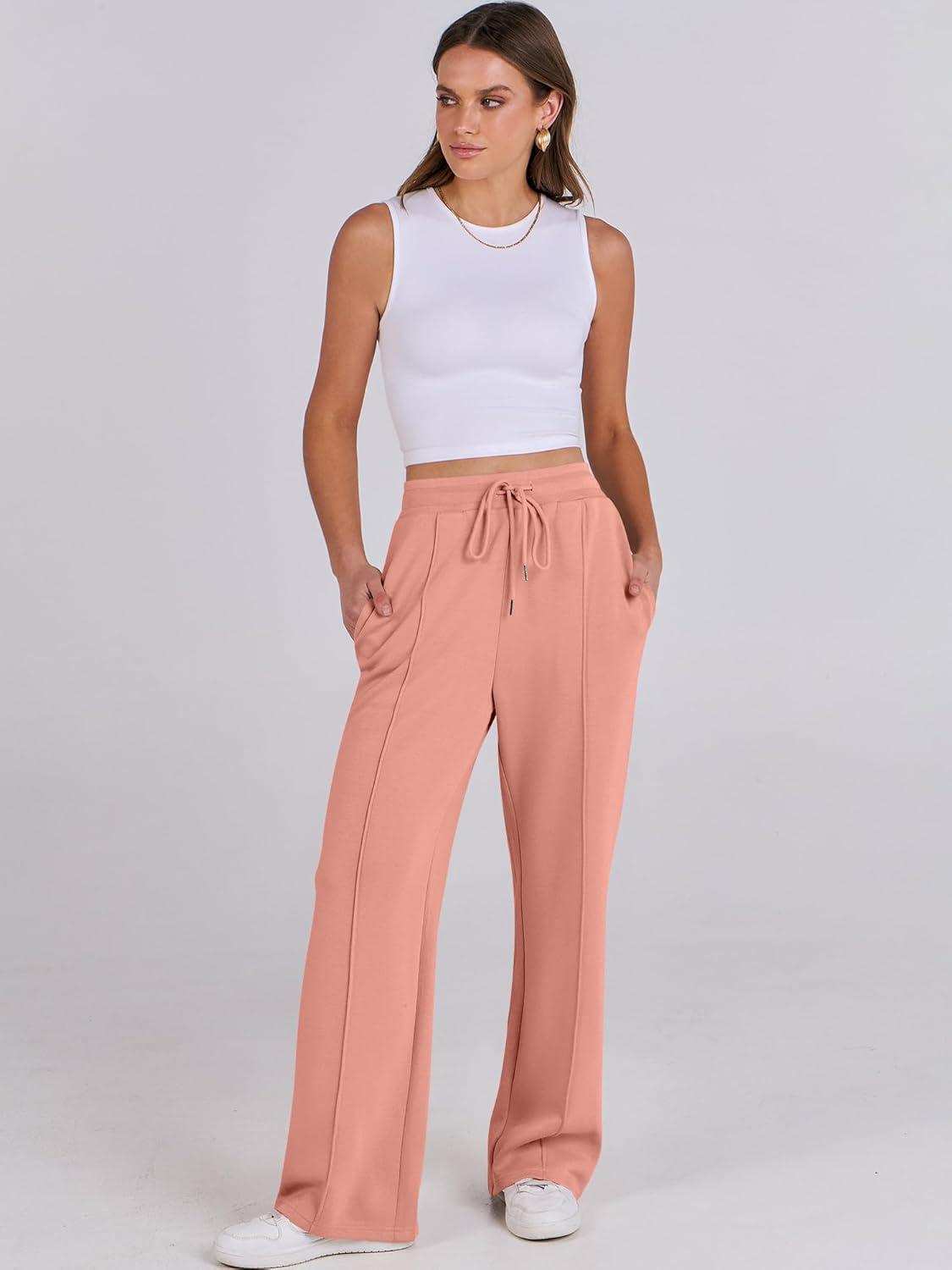ANRABESS Women’s Wide Leg Sweatpants High Waist Baggy Flared Pants Drawstring Athletic Joggers Sweat Pants(Coral)