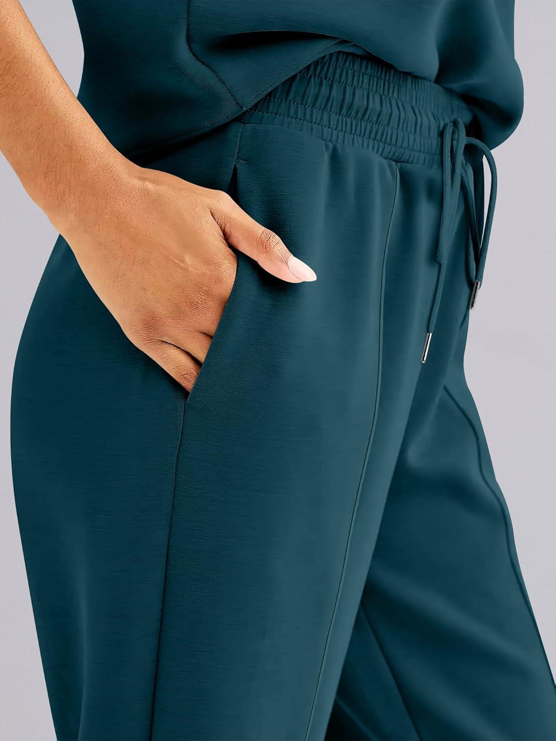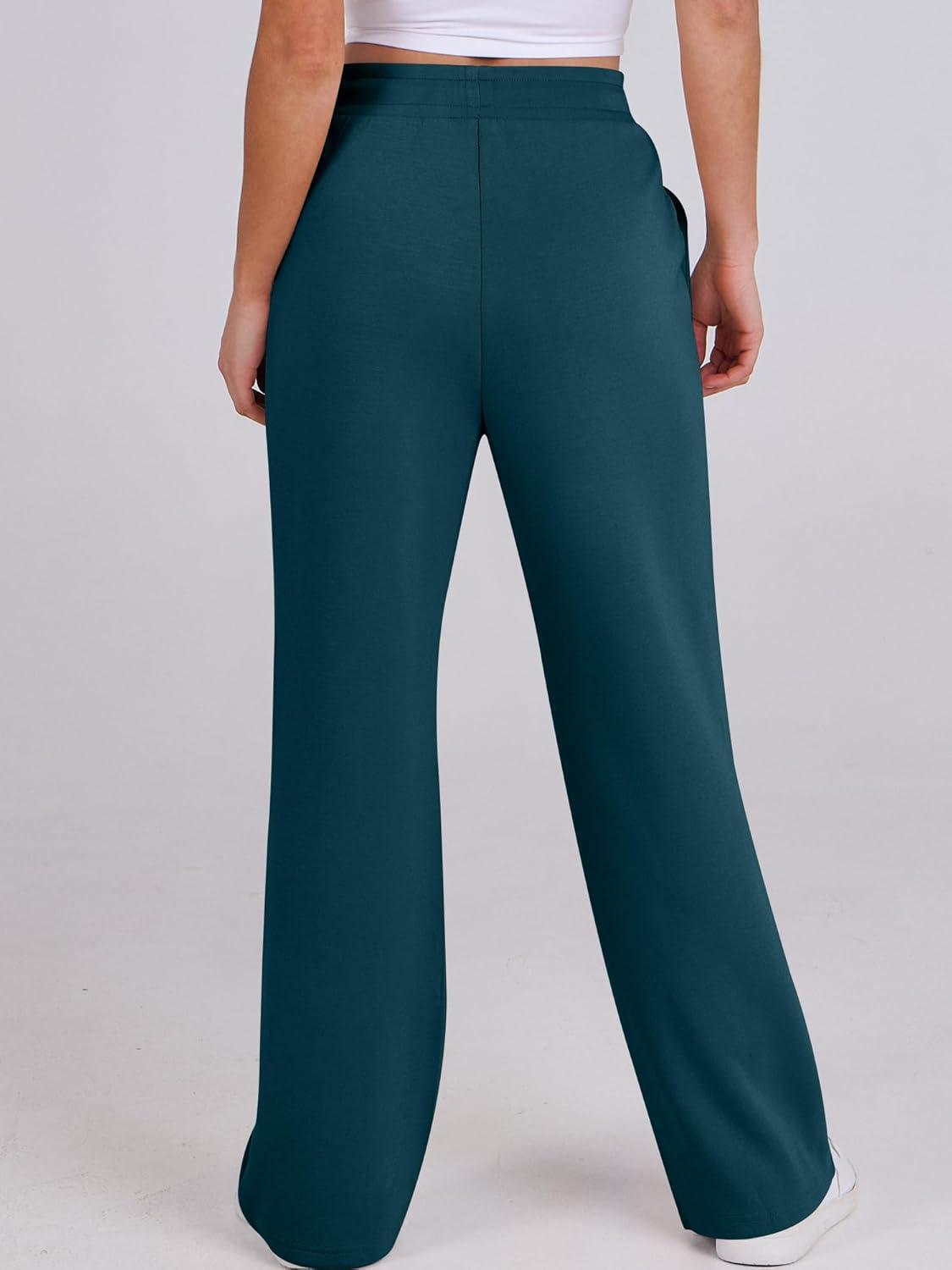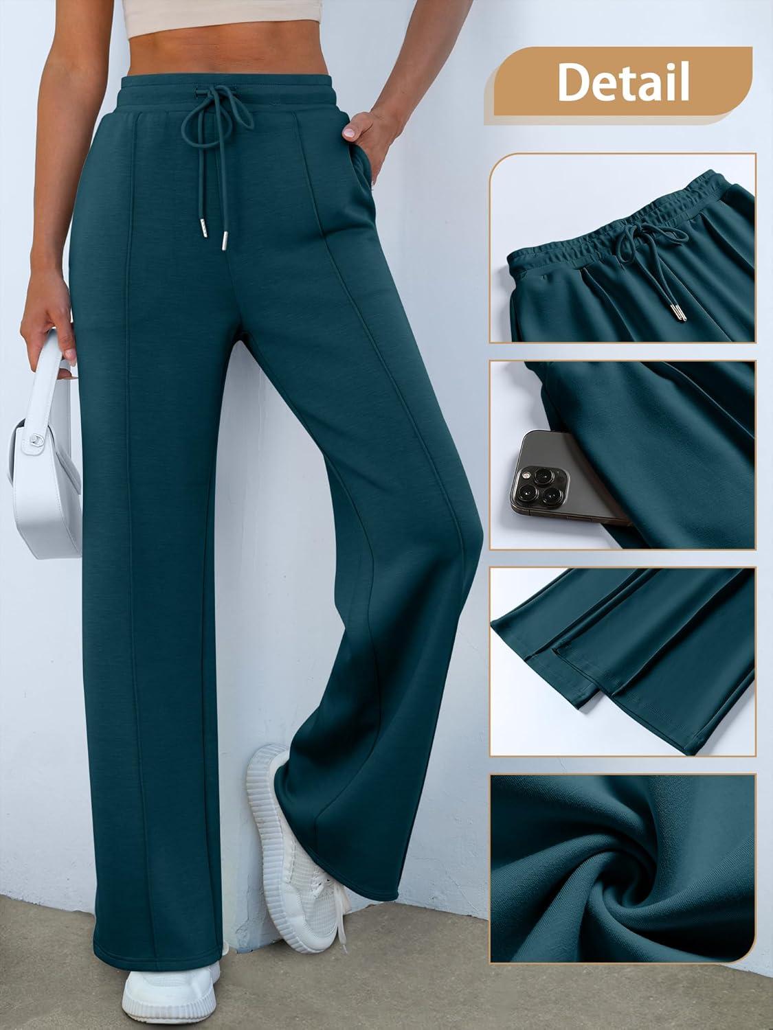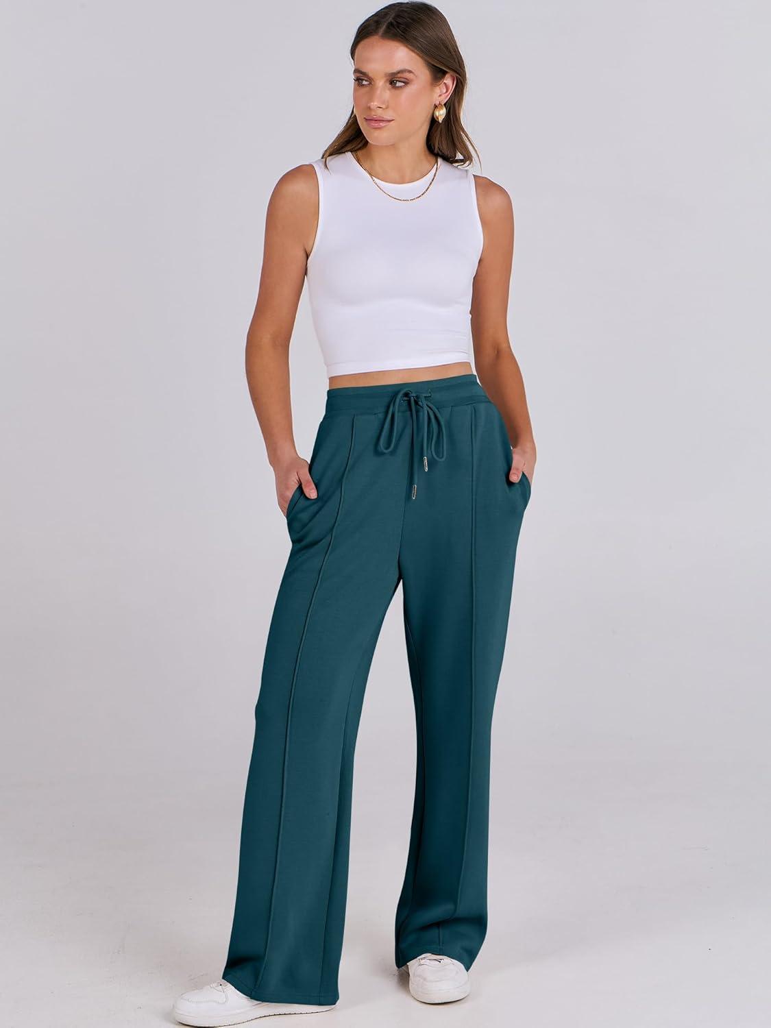 ANRABESS Women’s Wide Leg Sweatpants High Waist Baggy Flared Pants Drawstring Athletic Joggers Sweat Pants(Lake)