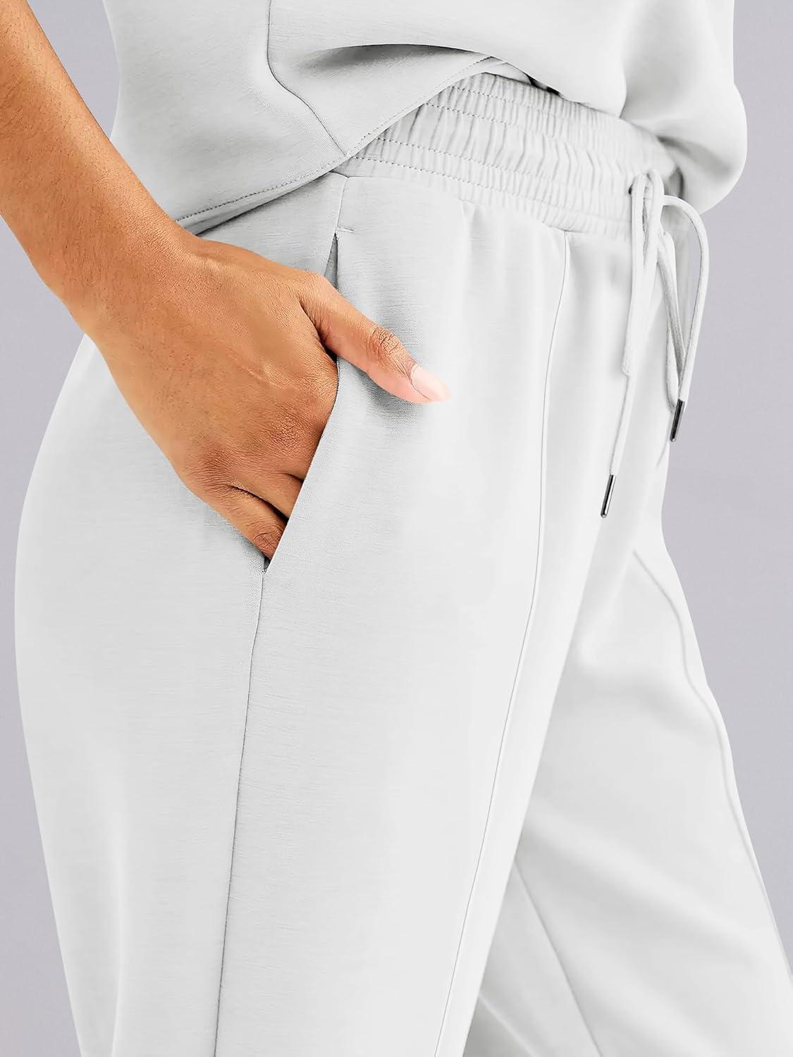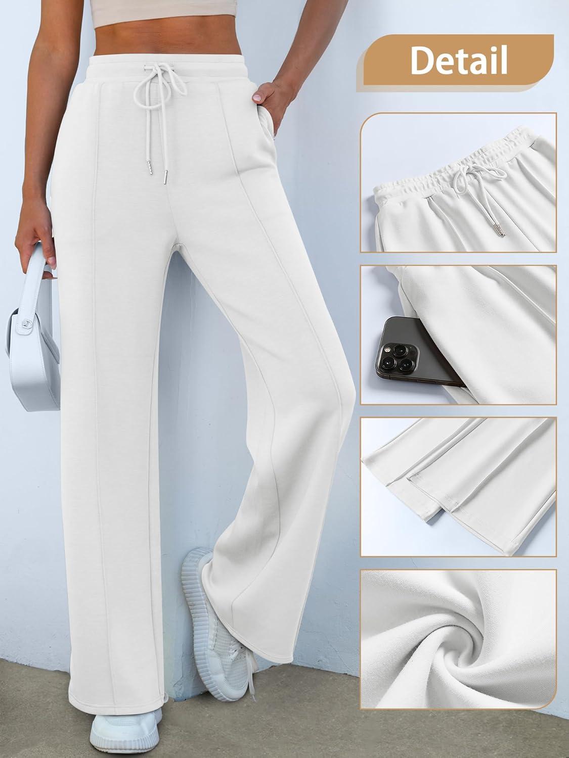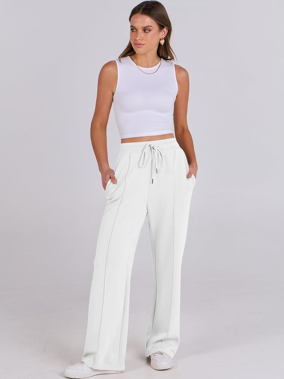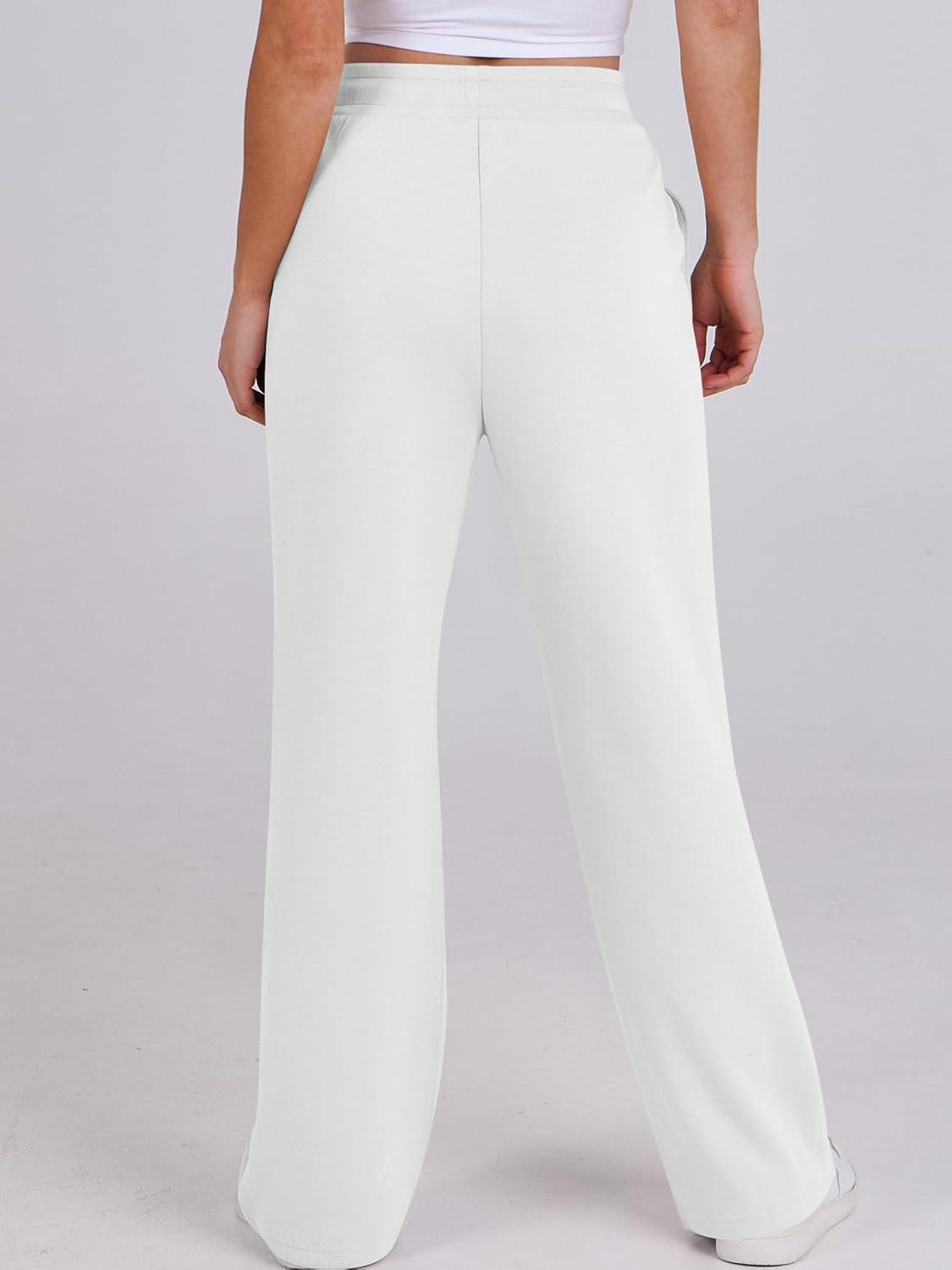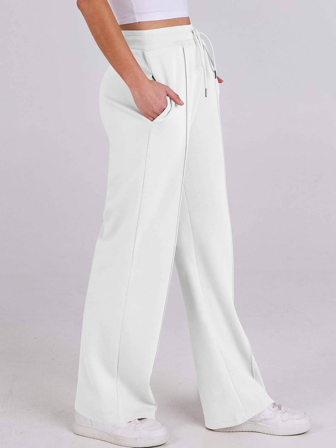 ANRABESS Women’s Wide Leg Sweatpants High Waist Baggy Flared Pants Drawstring Athletic Joggers Sweat Pants(White)