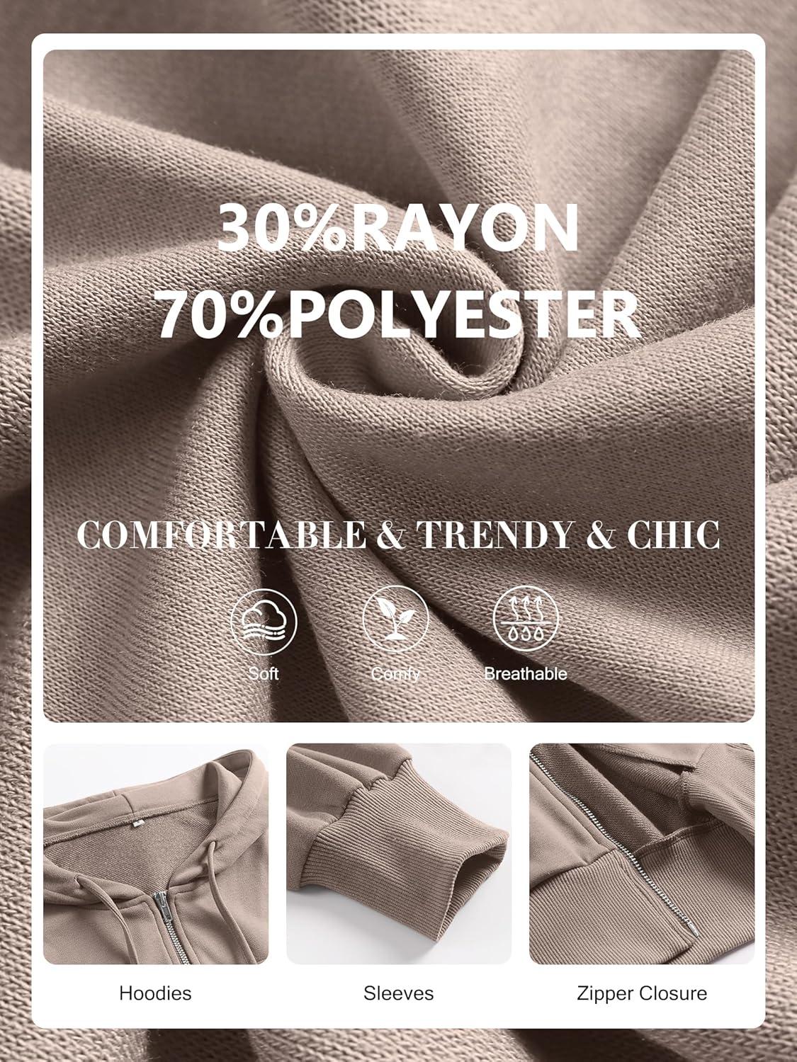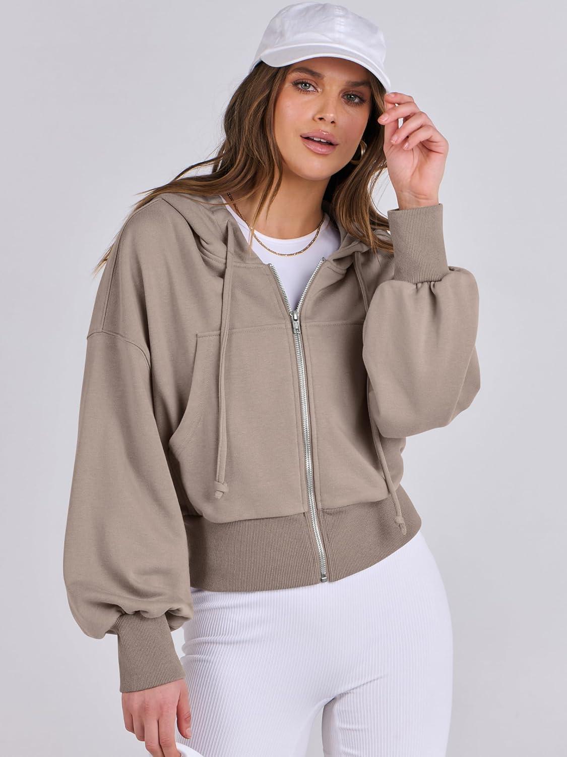 ANRABESS Womens Zip Up Hoodies Cropped Sweatshirts Casual Comfy Cute Zip Jackets Fashion Trendy Fall Outfits 2025 Y2K Clothes(Khaki)